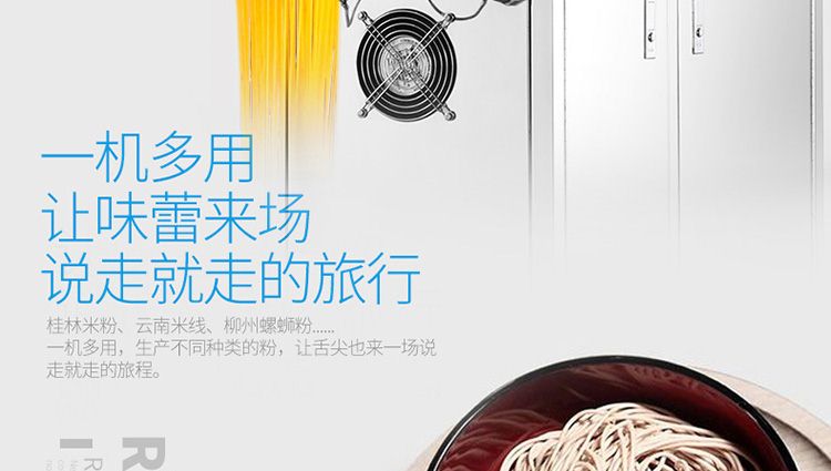 一步成型米粉機,一機多用:米粉機廣泛適用于所有含淀粉類糧食作物。大米、玉米、蕎麥、紅薯、土豆、綠豆、豌豆等都可以生產(chǎn),它不僅能生產(chǎn)米粉、米粉、朝鮮冷面、牛筋面、年糕、玉米面條、各種雜糧粉絲、各種面條、雜糧面條、彩色面條等多種面食品