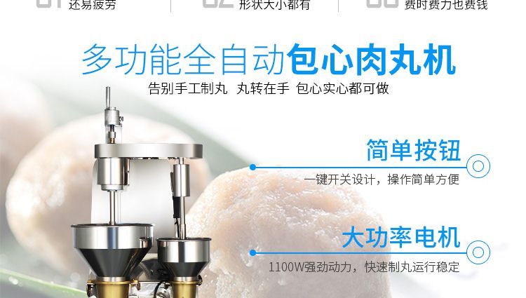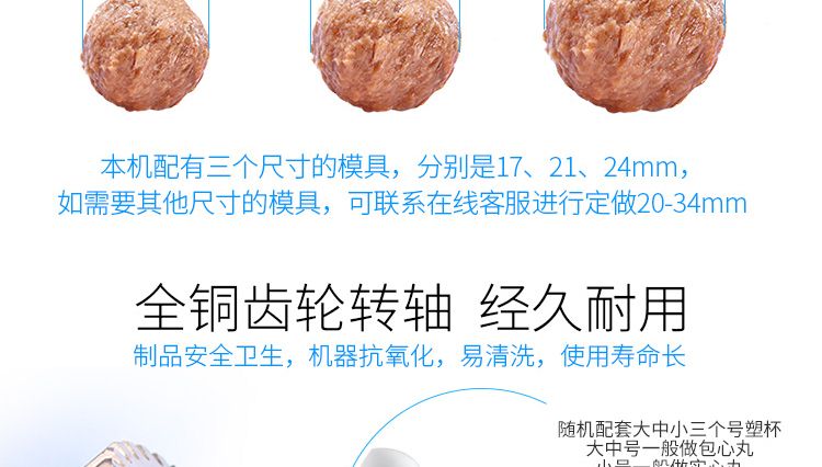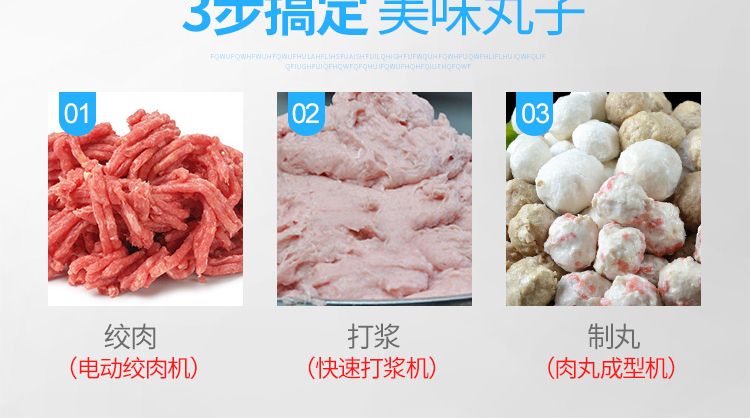 用于制作豬肉丸、魚(yú)肉丸、牛肉丸、雞肉丸、貢丸等各種肉丸。