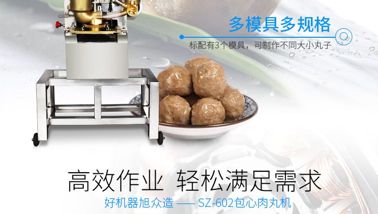 SZ-602包心肉丸機(jī),可生產(chǎn)包心魚(yú)丸、包心豬肉丸、撒尿牛肉丸、爆汁小魚(yú)丸等多種球形醬湯類包餡產(chǎn)品。操控性強(qiáng)、穩(wěn)定性高、出品率穩(wěn)定;可抽皮增餡,做到皮薄餡多。