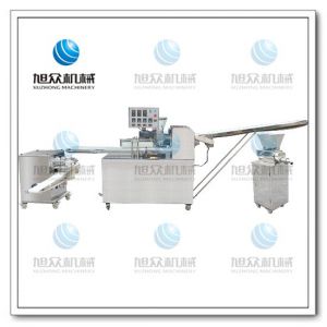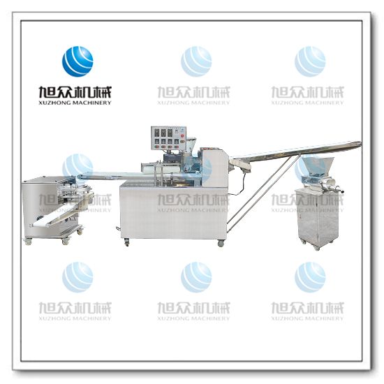 旭眾牌SZ-09A多功能單段酥餅機(jī)是經(jīng)面輪將面皮壓成合適厚度,由自動(dòng)出餡機(jī)將餡料充填至面皮上,經(jīng)卷面輪將面皮卷成圓柱狀,后以成型刀具切割成球狀,或是長(zhǎng)條狀餅胚,再經(jīng)過打餅成形,整個(gè)成形過程不會(huì)破壞面皮筋性。